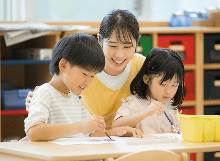 集団活動では、理科実験・創作活動・知育ゲームなど学習にまつわる活動を遊びの中で行っていきます。各活動全てに意味を持たせ、何を学びとして子ども達に提供するかを設計したものとなります。楽しく遊びながら自然と知識や技能として身につき、また思考力や気づきを高めていきます。
